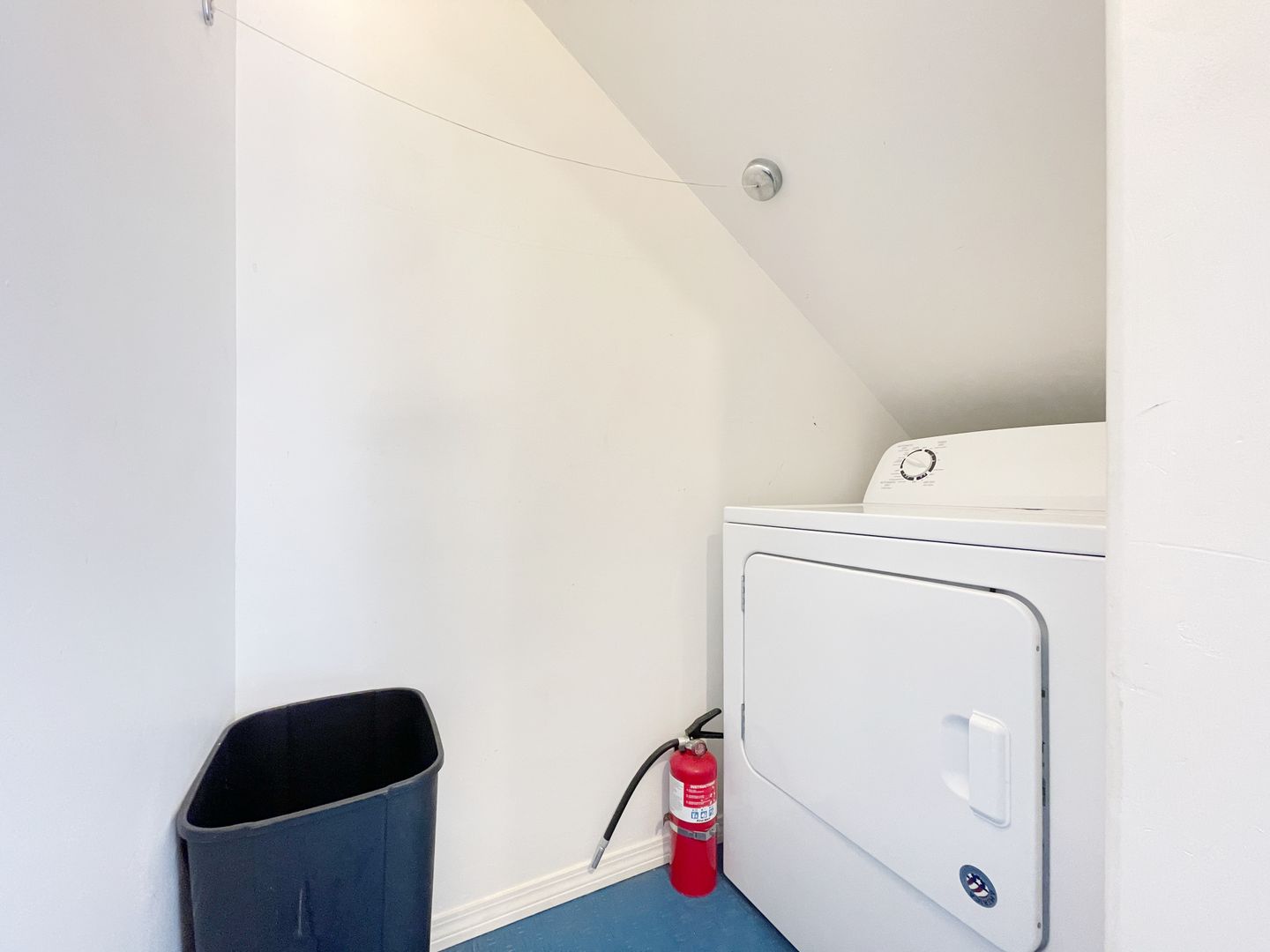 The interior features a full kitchen, easy to clean ceramic tile and laminate flooring, a steam shower, ceiling fans, a storage shed, and washer / dryer. Water & internet are included in the rent.